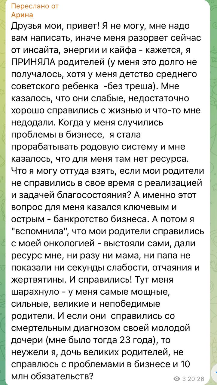 Другое дело, когда чувствуешь себя любимым всей родовой системой. За спиной вырастают крылья и несут в капитал: самореализацию, счастливые отношения, достойные деньги.