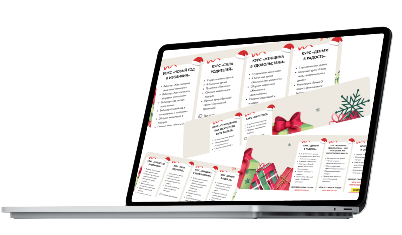 В НОВОГОДНЕЙ РАСПРОДАЖЕ мы предлагаем уникальные программы по самым выгодным ценам, которые более не будут продаваться. Не стоит откладывать свое психологическое здоровье на потом. К тому же, тогда вы не сможете принять участие в Новогодней расстановке с ответами на вопросы от Екатерины Целиковой.